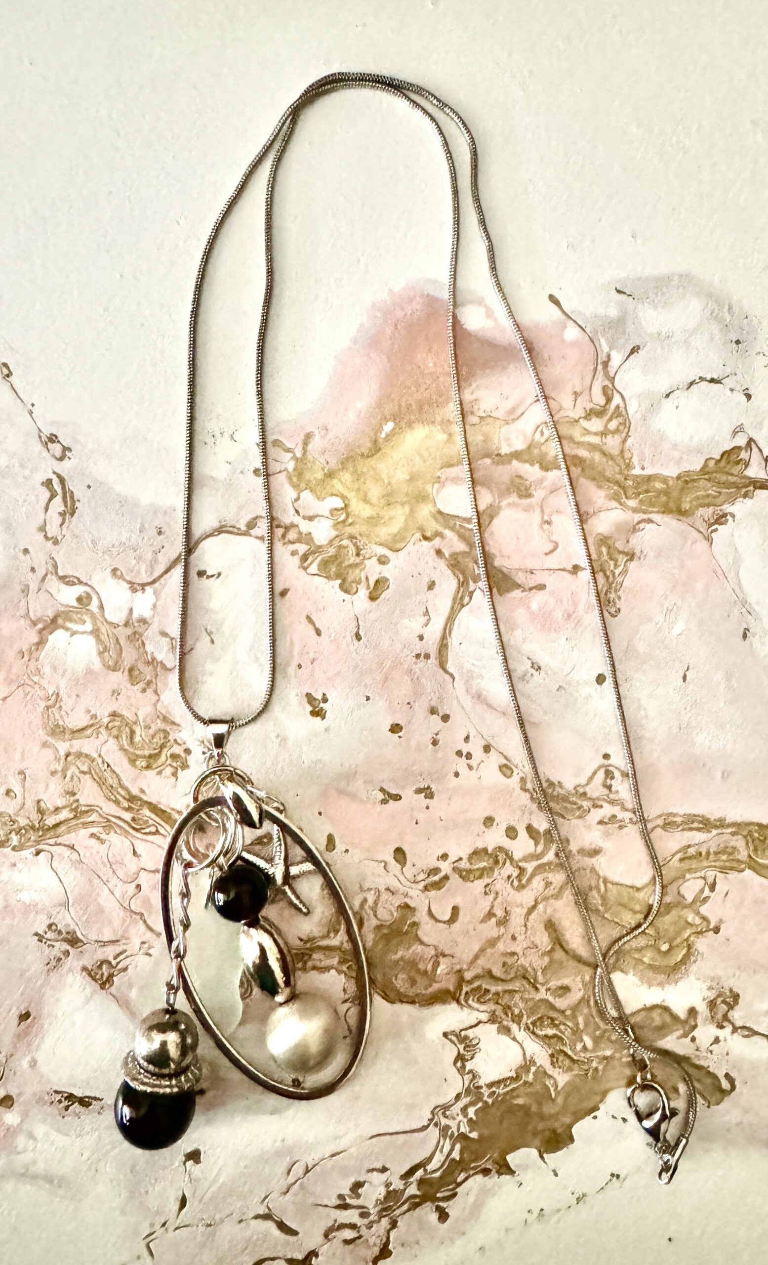 White Sea Glass in Silver Oblong Shape on @4″ silver plated chain